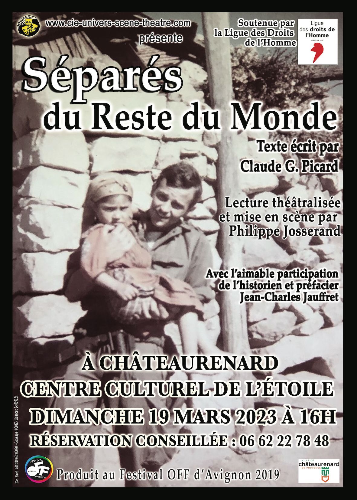 « Séparés du reste du monde » est une lecture spectacle extrait du journal intime d'un jeune soldat chasseur alpin appelé en Algérie en 1961,